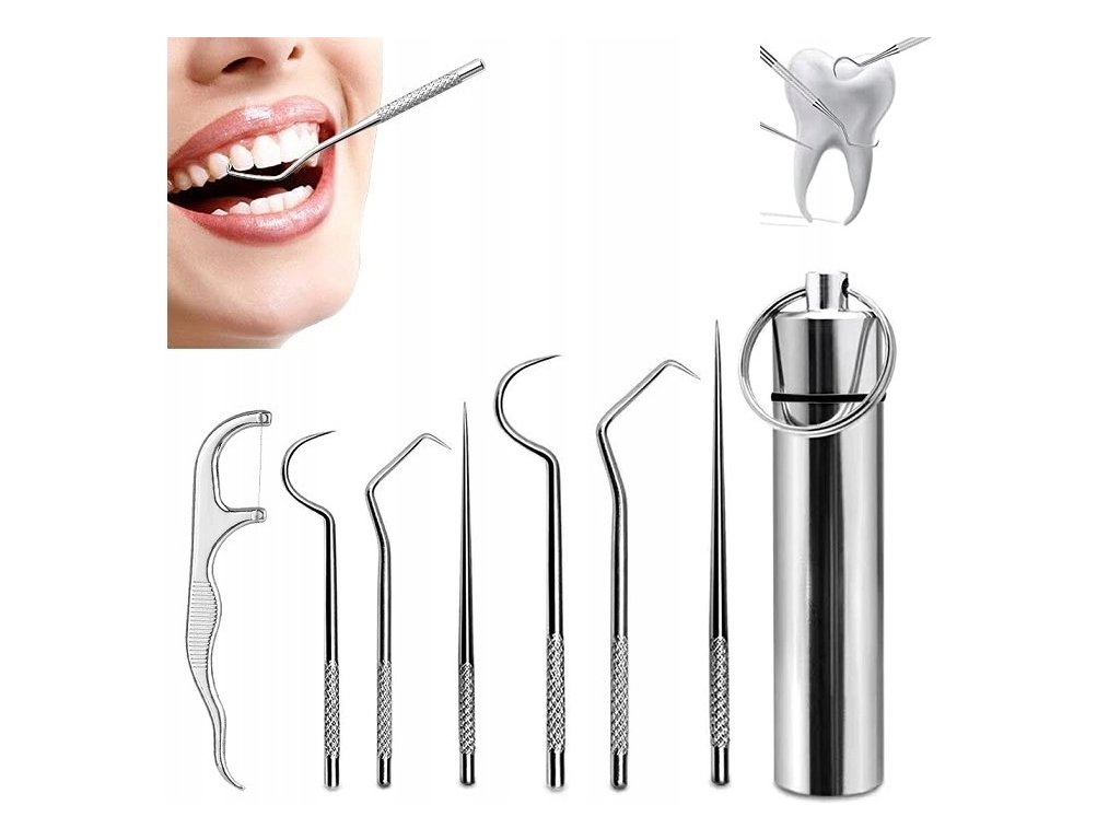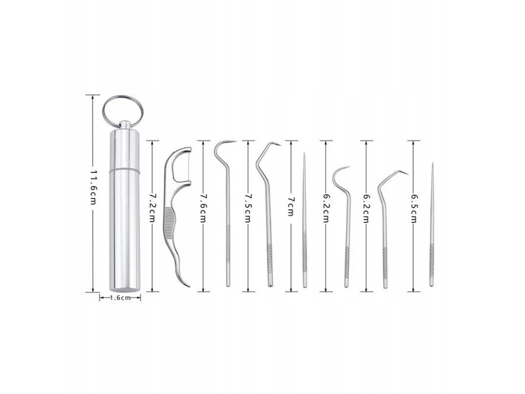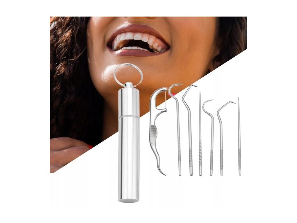 Sada párátek z nerezové oceli opakovaně použitelné 7 kusů cestovních nástrojů na ústní hygienu s pouzdrem na klíče