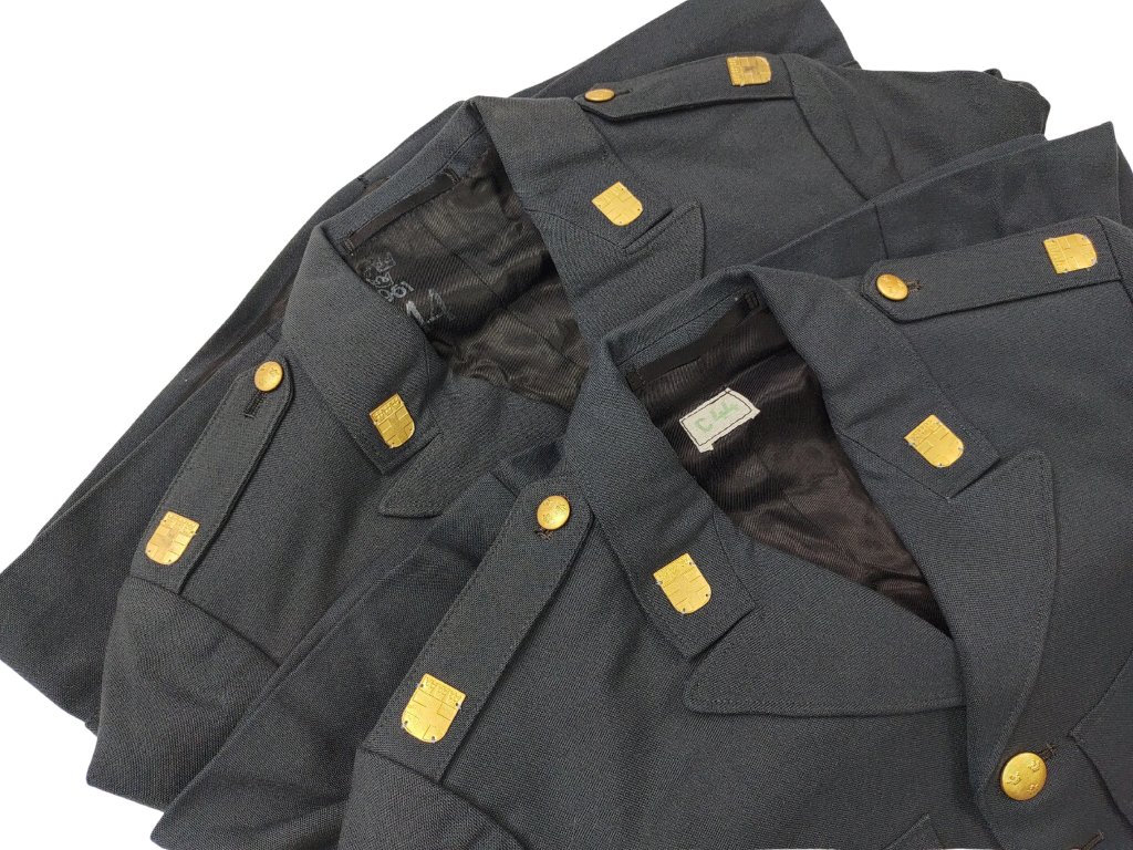 Služební uniforma M/1960. V roce 1960 byla uzákoněna nová služební uniforma, M/1960. Oproti bojovým uniformám M/1958 a M/1959 měla jiný střih. Barva byla ocelově šedá, měla úzký design a byla vyrobena z tenčí látky. Sako M/1960 bylo jednořadé s 5 pozlacenými knoflíky (některé jednotky měly knoflíky postříbřené), vybavené ramenními popruhy, dvěma náprsními kapsami a dvěma bočními kapsami, vše s klopami. Odznaky poboček byly nošeny na obou špičkách límce, zatímco odznaky jednotek a hodnosti byly nošeny na ramenních popruzích. Odznaky byly vyrobeny z bronzovaného kovu (některé jednotky měly postříbřené hodnostní označení). Ocelově šedé dlouhé kalhoty M/1960 byly opatřeny kapsami a dvěma kapsami v zadní části. Košile M/1960 byla vyrobena v modrošedé barvě a vybavené límcem a ramenními popruhy. Náprsní kapsy byly dvě s klopami. Ke košili se nosila modrošedá kravata. Kabát M/1960 byl ve stejné barvě jako sako, dvouřadý se třemi knoflíky, sahal ke kolenům a opatřen nárameníky. Po stranách byly dvě kapsy. V zimním období se ke kabátu nosila kožešinová čepice s kšiltem.