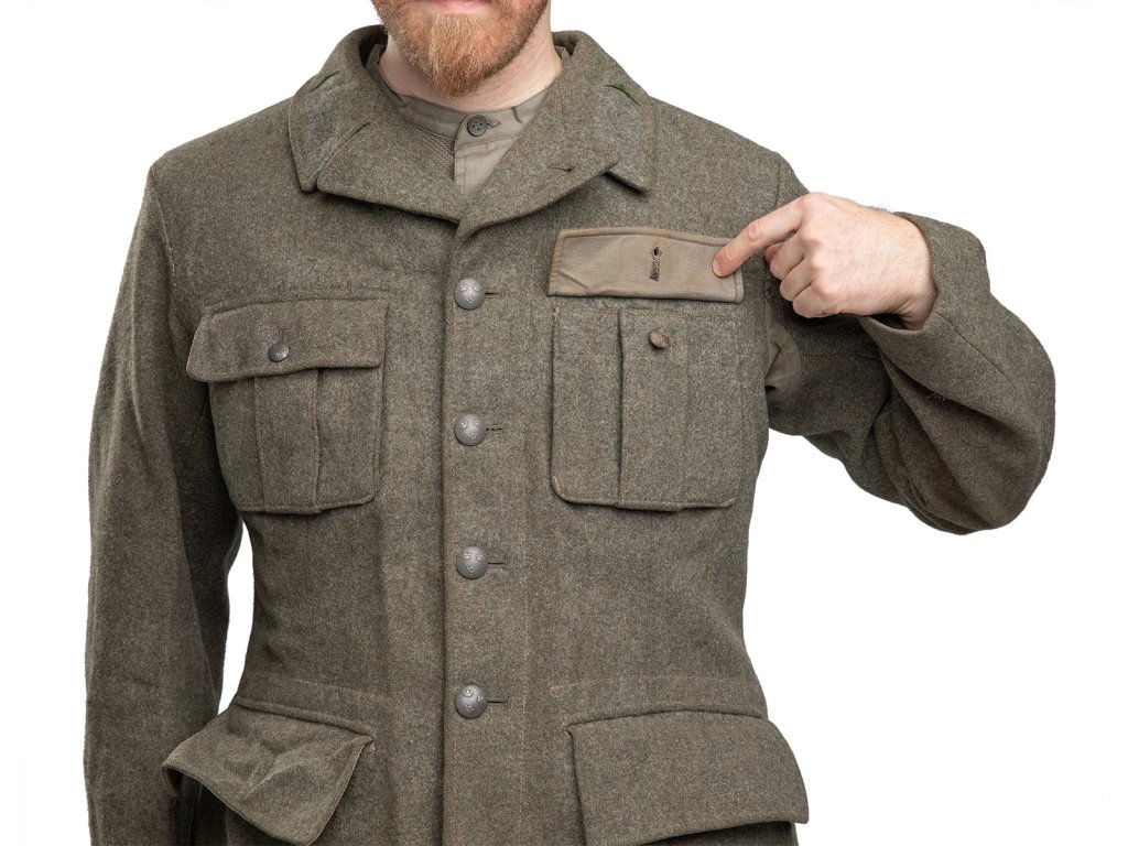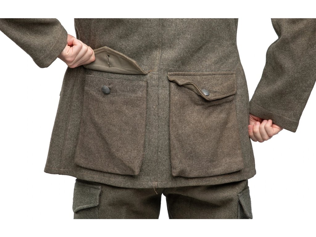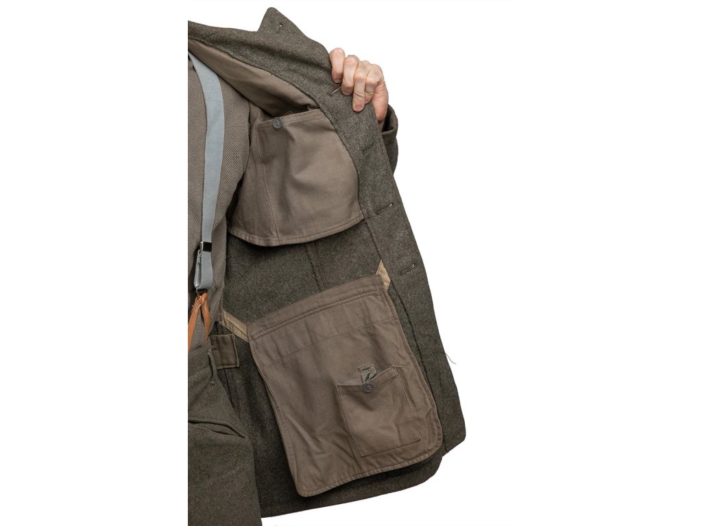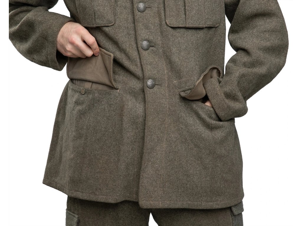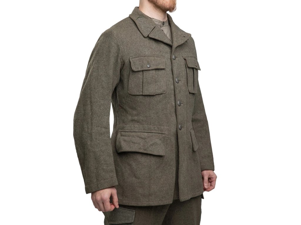 - Švédské vojenské sako model M-1939, vyrobené z prvotřídní přírodní vlny s vnitřní bavlněnou podšívkou.