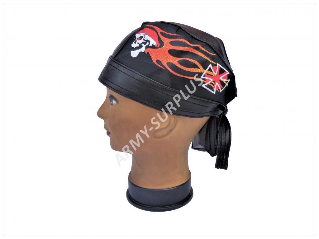 Šátek pirát kožený lebka plamen kříž vzor 6