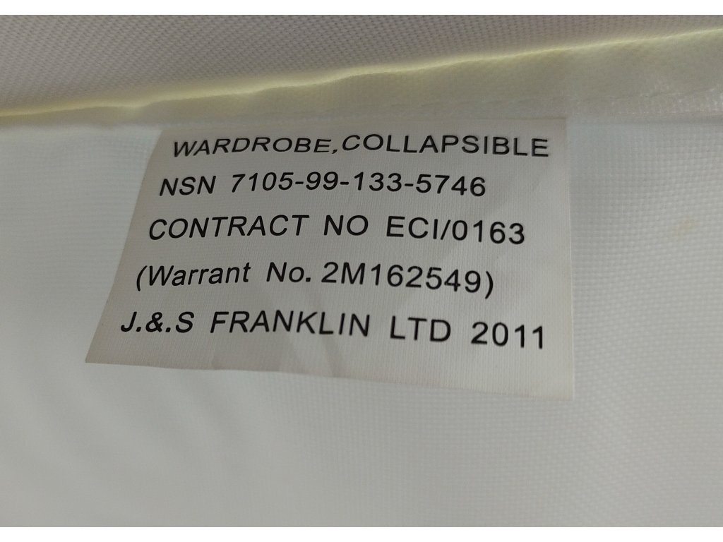 Skládací šatní přihrádky / šatní organizér, originální vojenské vybavení britské armády. Nové, nepoužité, v původním igelitovém balení. V horní části závěs se suchým zipem pro snadné zavěšení/přichycení.