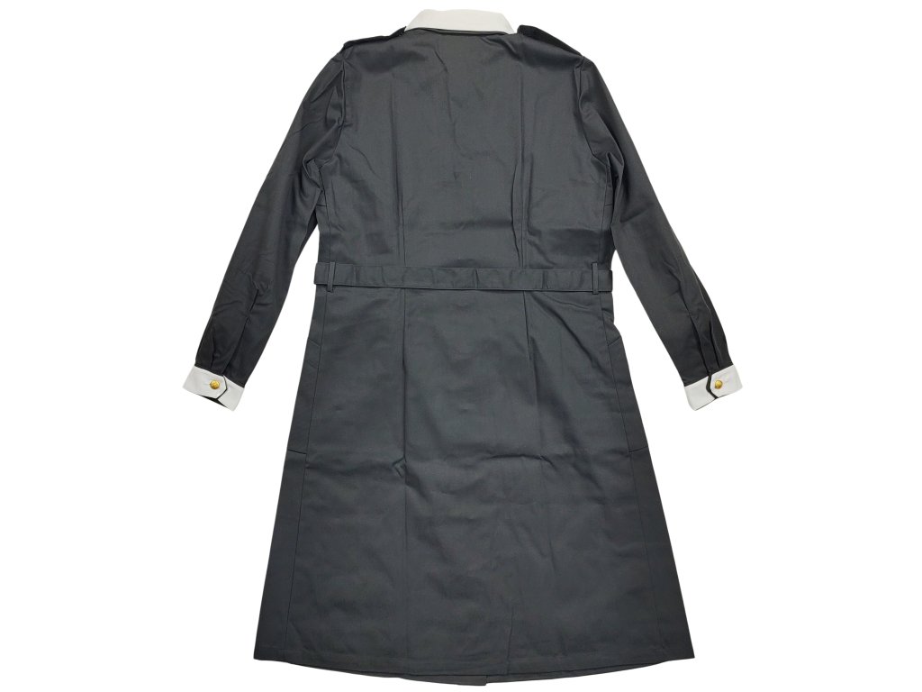 Tyto kabátové šaty jsou vyrobeny z ocelově šedé látky (keprová vazba) 35 % polyesteru a 65 % bavlny. Zapínání je na čtyři malé uniformní knoflíky zlaté barvy m/1939-1960 v části halenky a na šest plastových knoflíků v části sukně, které mají skryté zapínání.