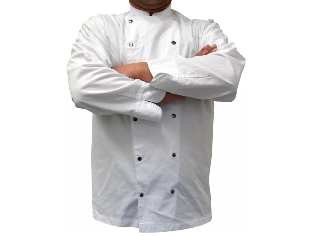 - Originální kuchařský oděv, bílý rondon kuchaře/šéfkuchaře, nebo také pracovní košile s dlouhým rukávem pro manipulátory s potravinami.
