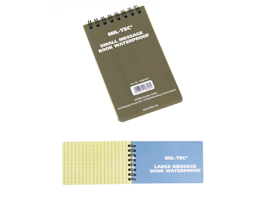 - MIL-TEC® SMALL (75 x 130 MM) MESSAGE BOOK WATERPROOF.