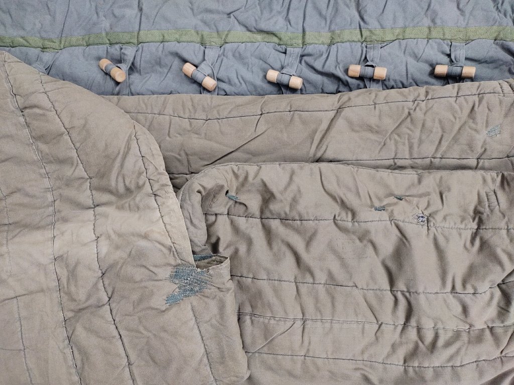 - Použité zboží 2. jakosti (spací pytle jsou více opotřebené, mají vybledlé barvy, znečištění, opravy a drobné trhliny, některé dřevěné olivky mohou chybět, nesou stopy dlouhodobého skladování, viz. fotografie).