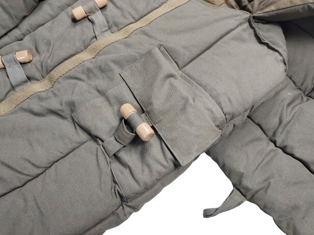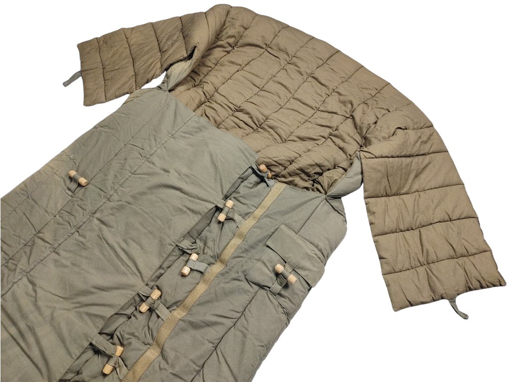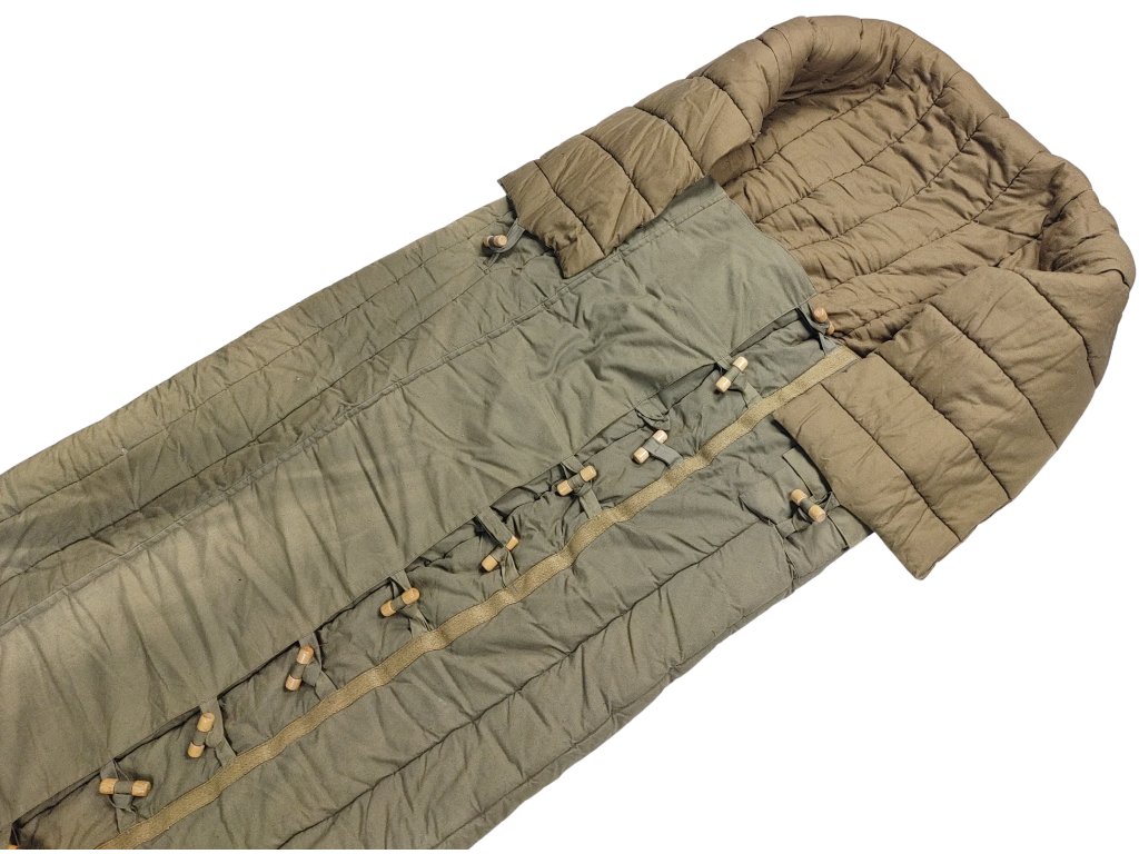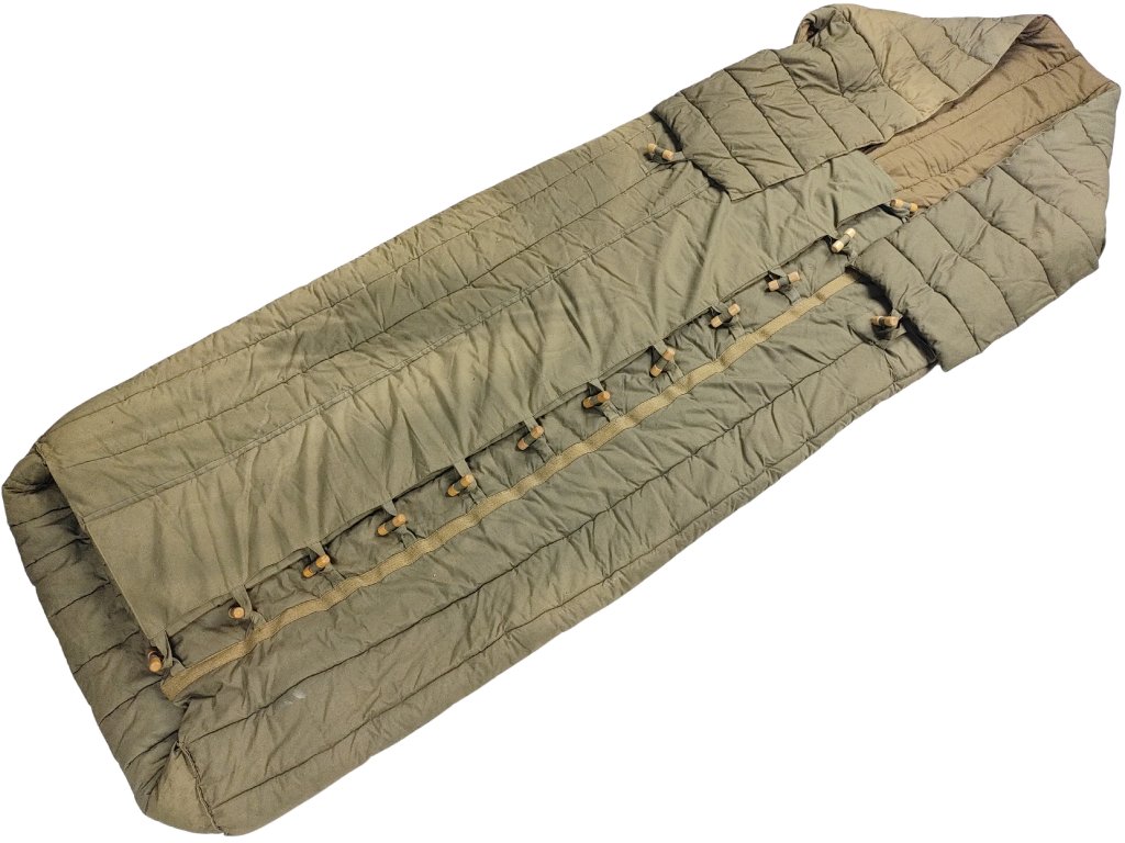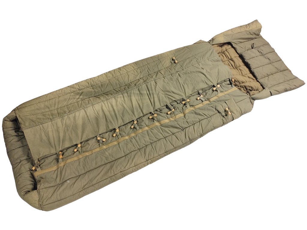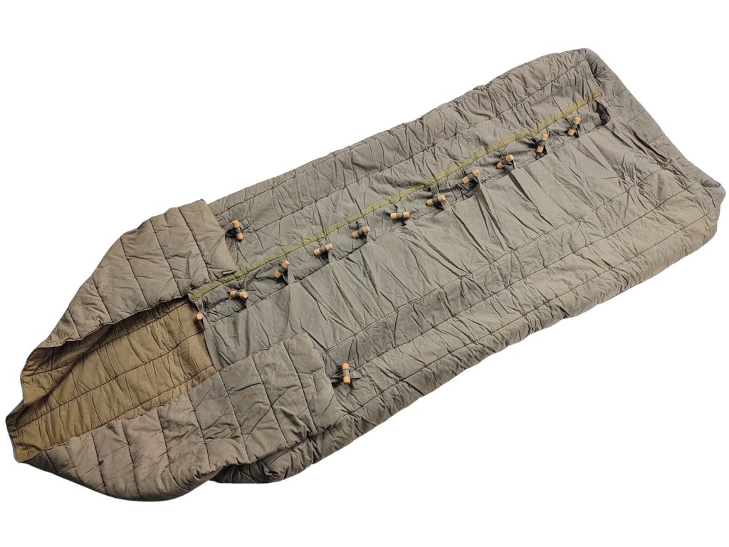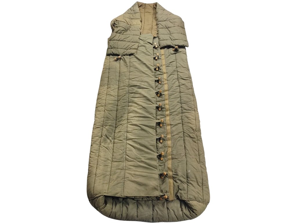 Odsunový spací pytel vzor 52 pro zraněné vojáky z vybavení Československé lidové armády (ČSLA). Originál prošívaný vak - evakuační spacák pro zraněné. Tento spací pytel lze použít jako klasický spací pytel, ale vlivem své vyšší hmotnosti přes 8 kilogramů je vhodný spíše do chaty a domácích zázemí. Plně rozložitelný, se zapínáním po celé přední délce na dřevěné olivky.