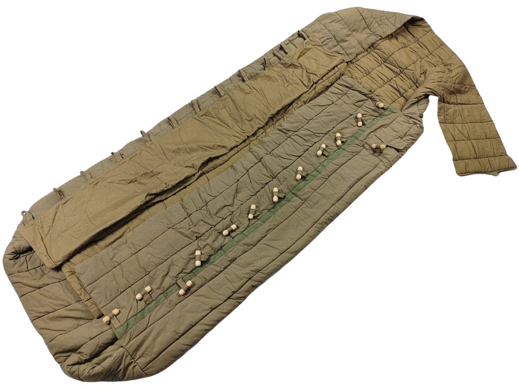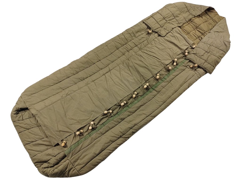 Odsunový spací pytel pro zraněné vojáky z vybavení Československé lidové armády (ČSLA). Originál vak - evakuační spacák pro zraněné. Tento spací pytel lze použít jako klasický spací pytel, ale vlivem své vyšší hmotnosti téměř 8 kilogramů je vhodný spíše do chaty a domácích zázemí. Plně rozložitelný, se zapínáním po celé přední délce na dřevěné olivky.