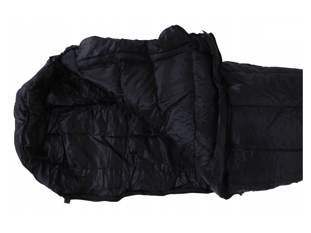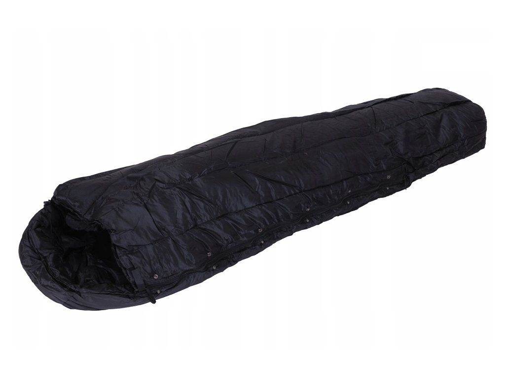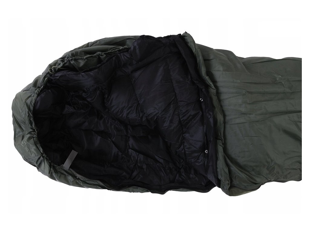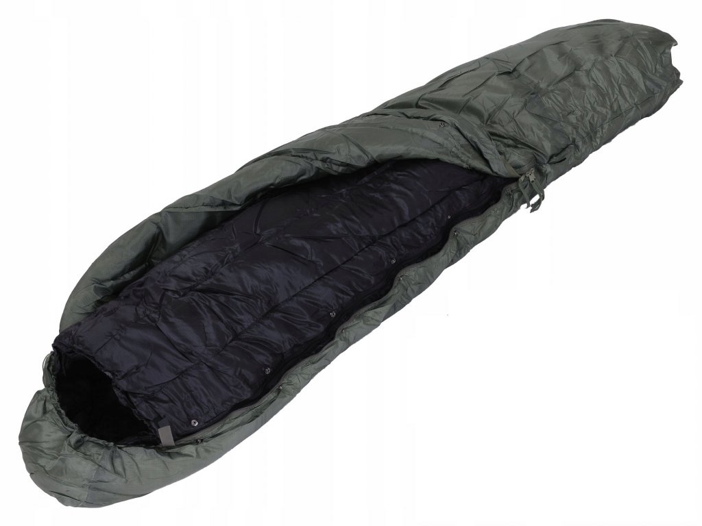 - Velice kvalitní spací systém tvaru mumie, inspirovaný osvědčeným vojenským modelem americké armády, skládající se ze 3 dílů (kompresní černý úložný vak, letní zelený spací pytel Patrol a zimní černý spací pytel Intermediate Cold).