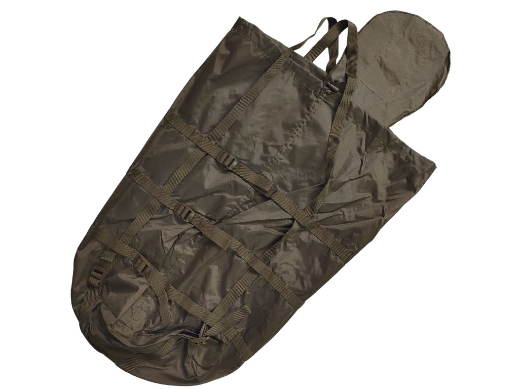 Obal je válcového tvaru a je zhotoven z nepromokavé tkaniny. Kompresní popruhy umožňují stažení uloženého obsahu do co nejmenšího objemu. Přes dno obalu ve tvaru kruhu jsou kolmo na sebe našity dva kompresní popruhy. Jeden ze dvou popruhů je zdvojený – první popruh je napevno našitý na dno obalu, druhý popruh je volný, přišitý pouze na dno obalu (40 až 50) mm od kraje popruhu. Zdvojené popruhy umožňují nesení sbaleného pytle. Popruhy jsou široké (20 ±3) mm a dlouhé (420 ±20) mm. Konce popruhů jsou opatřeny 4 sponami, do kterých jsou navlečeny dva (1570 ±30) mm dlouhé vertikální popruhy šířky (20 ±3) mm, konce vertikálních popruhů jsou zabezpečeny proti třepení podehnutím a prošitím. Na plášti obalu jsou našity další tři horizontální kompresní popruhy široké (20 ±3) mm a dlouhé (1220 ±30) mm, z nichž každý je opatřen jednou sponou. Vertikální popruhy jsou provlečeny pod horními třemi horizontálními popruhy. V horní části obalu je tunýlek šířky (20 ±3) mm provlečenou stahovací šňůrou, která je opatřena samosvorkou a zajištěna proti třepení. Otvor obalu lze zespodu překrýt oválnou krycí chlopní.