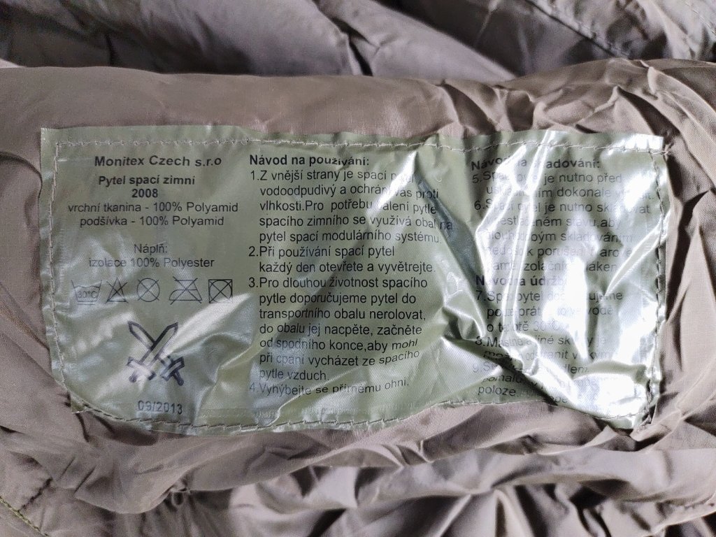 Pytel spací zimní 2008 - včetně kompresního obalu. Jde o originální výstrojní součástku AČR. Pytel spací zimní 2008 (dále jen pytel) je určen k odpočinku pro příslušníky AČR ve středoevropských a chladných klimatických podmínkách při teplotách do okolo -20 °C. Výrobcem je česká společnost Monitex Czech s.r.o..