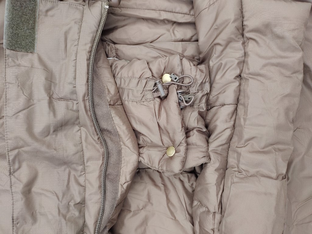 - V oblasti ramen všitý zateplovací límec, jeho volné překrývající se konce lze sepnout dvěma druky