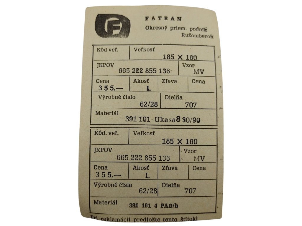 - Vyrobeno v Československu v průběhu 80. let 20. století národním podnikem Fatran.