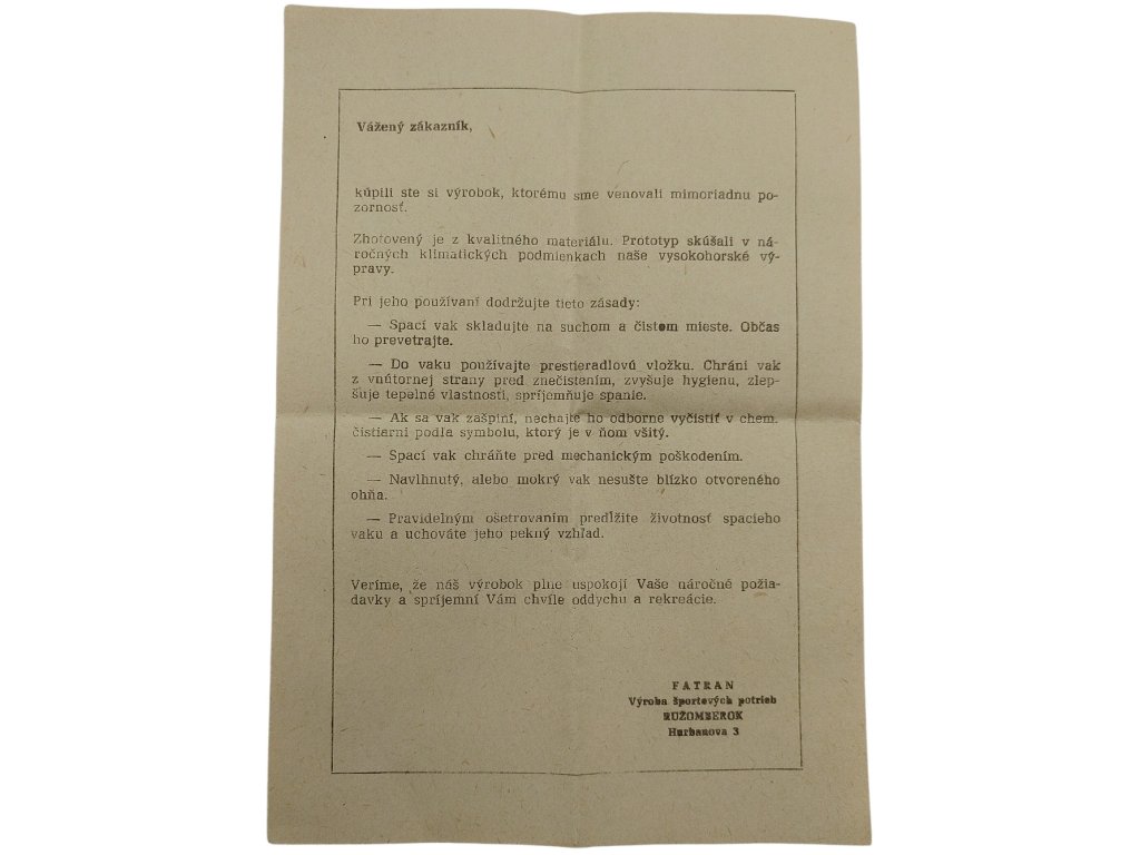 - Zánovní stav (spací pytle jsou nepoužité, mohou nést stopy dlouhodobého skladování, některé kusy bez papírového návodu).