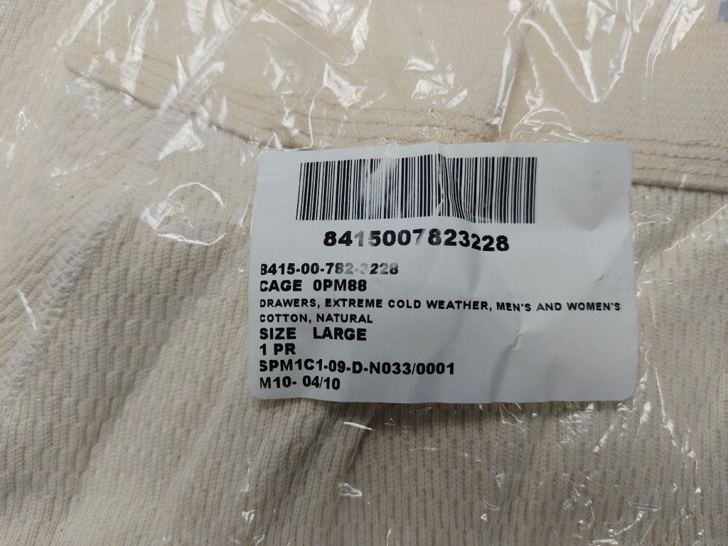 - US GI DRAWERS, EXTREME COLD WEATHER, MEN'S AND WOMAN'S, COTTON, NATURAL.