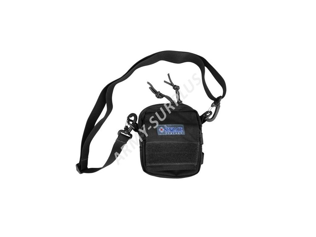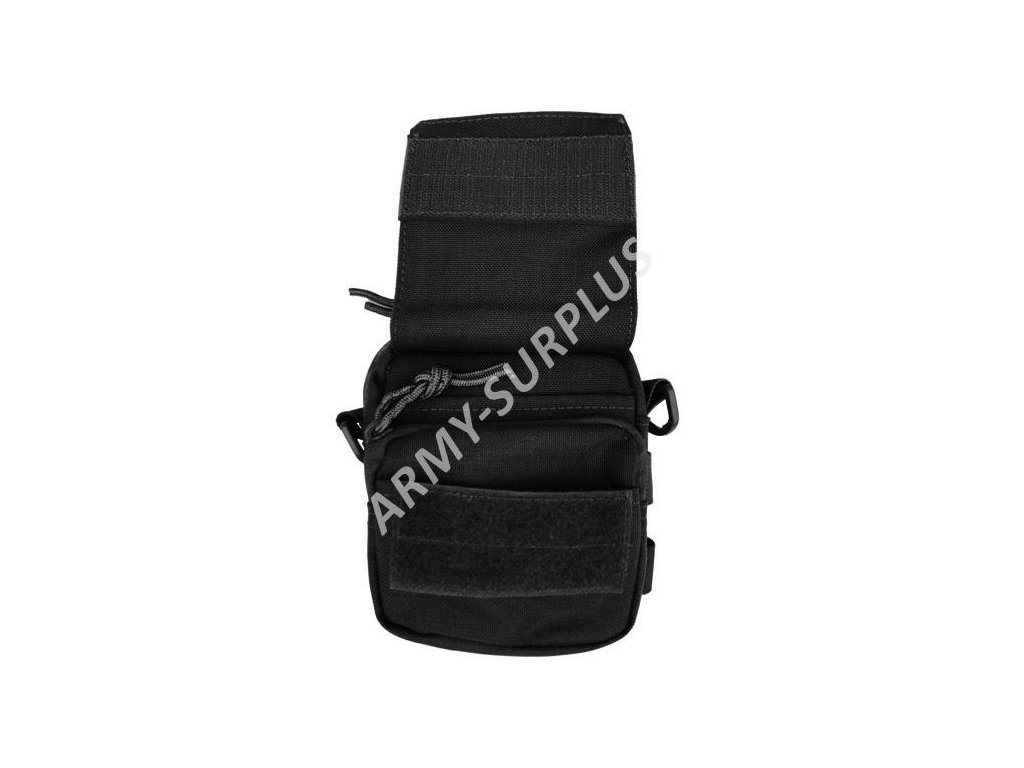 - na přední straně chlopeň se zapínáním na suchý zip, na chlopni je velcro panel (cca 11 x 5 cm), pod chlopní jsou 2 přihrádky a jedna kapsička se zapínáním na zip