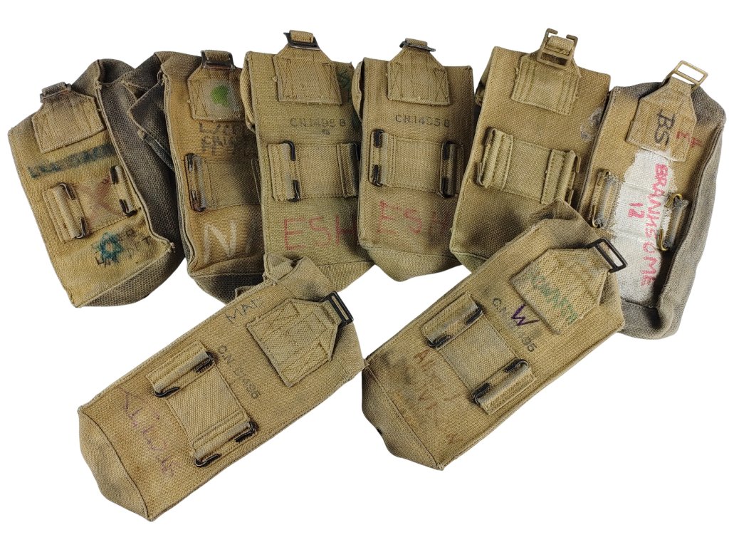 - Originální britská muniční plátěná sumka Mark III, nebo také pouzdro na náboje, munici a ruční granáty, pocházející z výstroje pozemních ozbrojených sil Královské armády Velké Británie (britské armády).