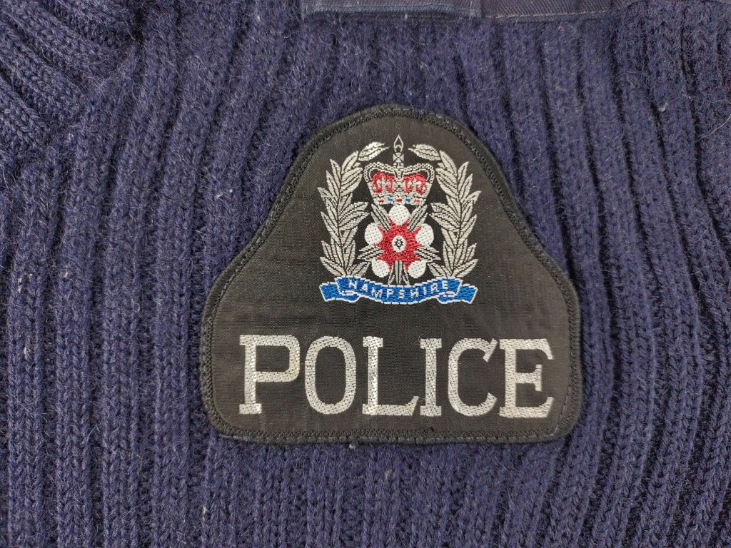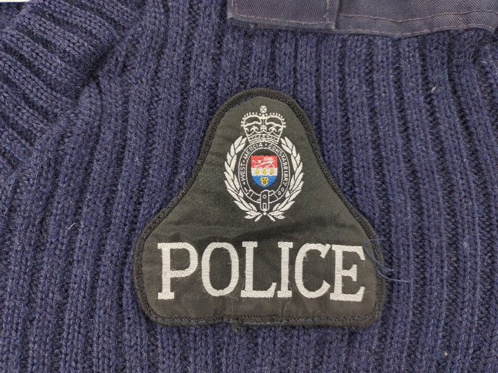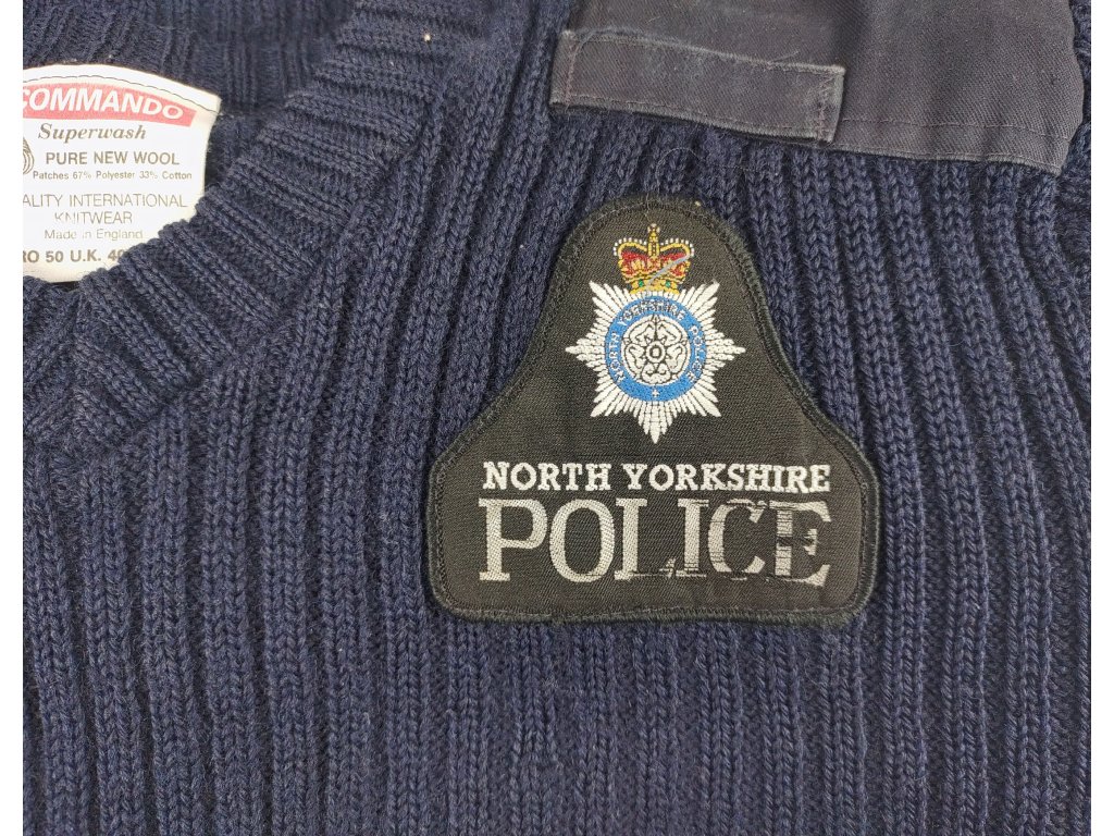 Velmi kvalitní služební svetr anglických/britských policejních složek Spojeného království, sloužící v anglickém nemetropolitním hrabství (hrabství Hampshire, Staffordshire, West Mercia Constabulary, a další..).