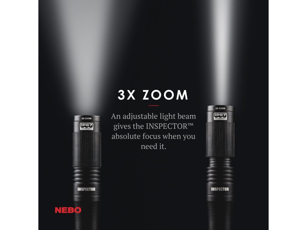 Svítilna NEBO INSPECTOR IP67 černá zoom 180 Lumens