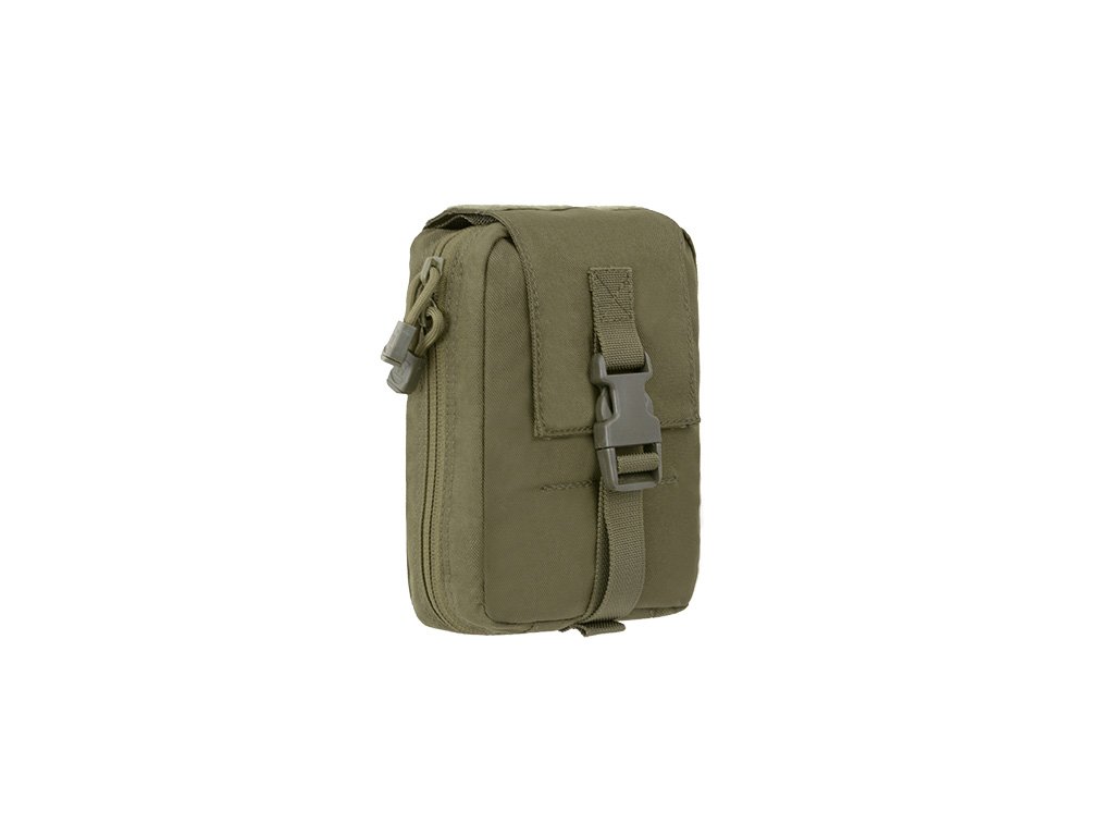 Lékařské pouzdro navržené společností 8FIELDS®, společností vyrábějící moderní taktické vybavení. Vyrobeno z vysoce kvalitního polyesteru 600D, který se vyznačuje vysokou odolností proti mechanickému poškození a díky PU úpravě, odolnosti vůči sněhu a vodě. Díky odtrhávajícímu a vyklápěcímu designu s vnitřním organizérem poskytuje lékárnička rychlejší přístup k individuální lékařské výbavě. Kompatibilní se všemi platformami MOLLE.