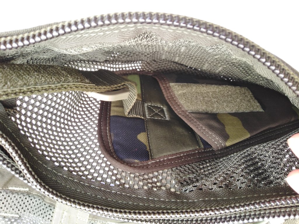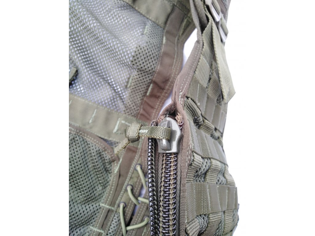 - vpředu dvě kapsy na zip, v levé kapse skryté pouzdro na zbraň, v pravé panel pro uchycení nábojů do brokovnice