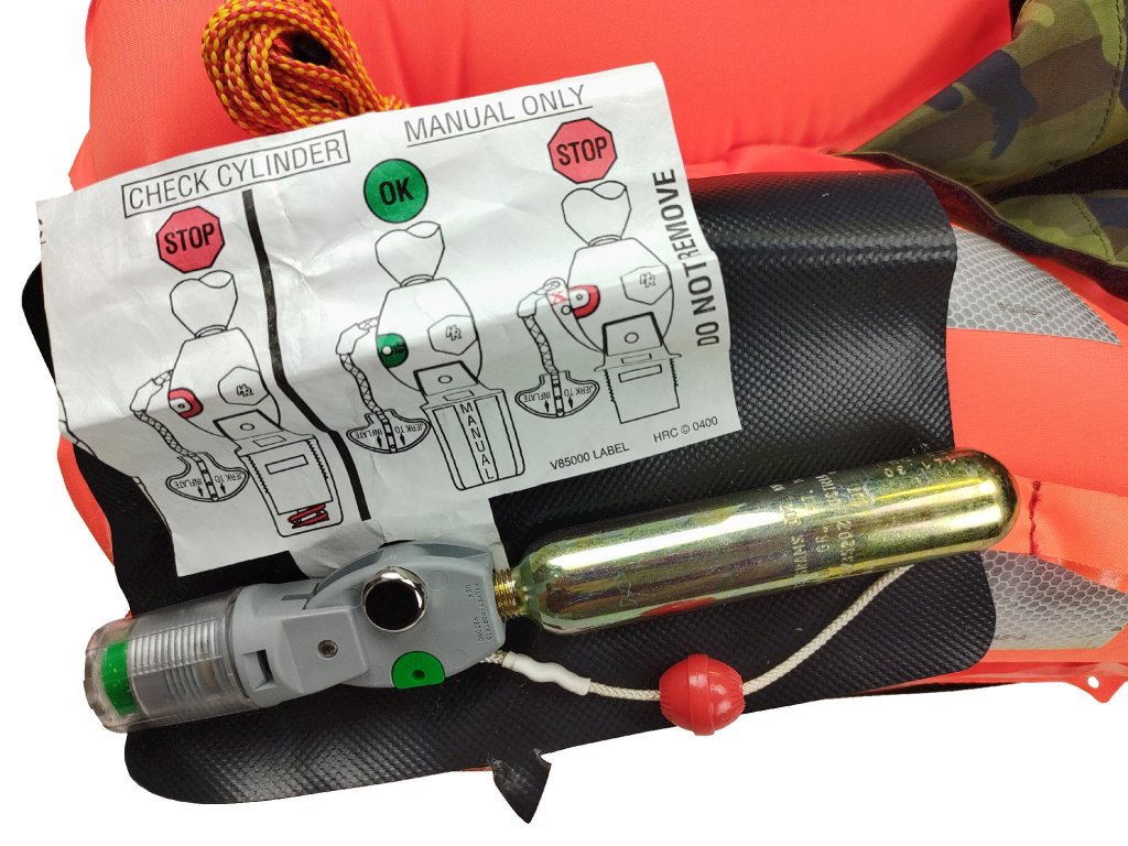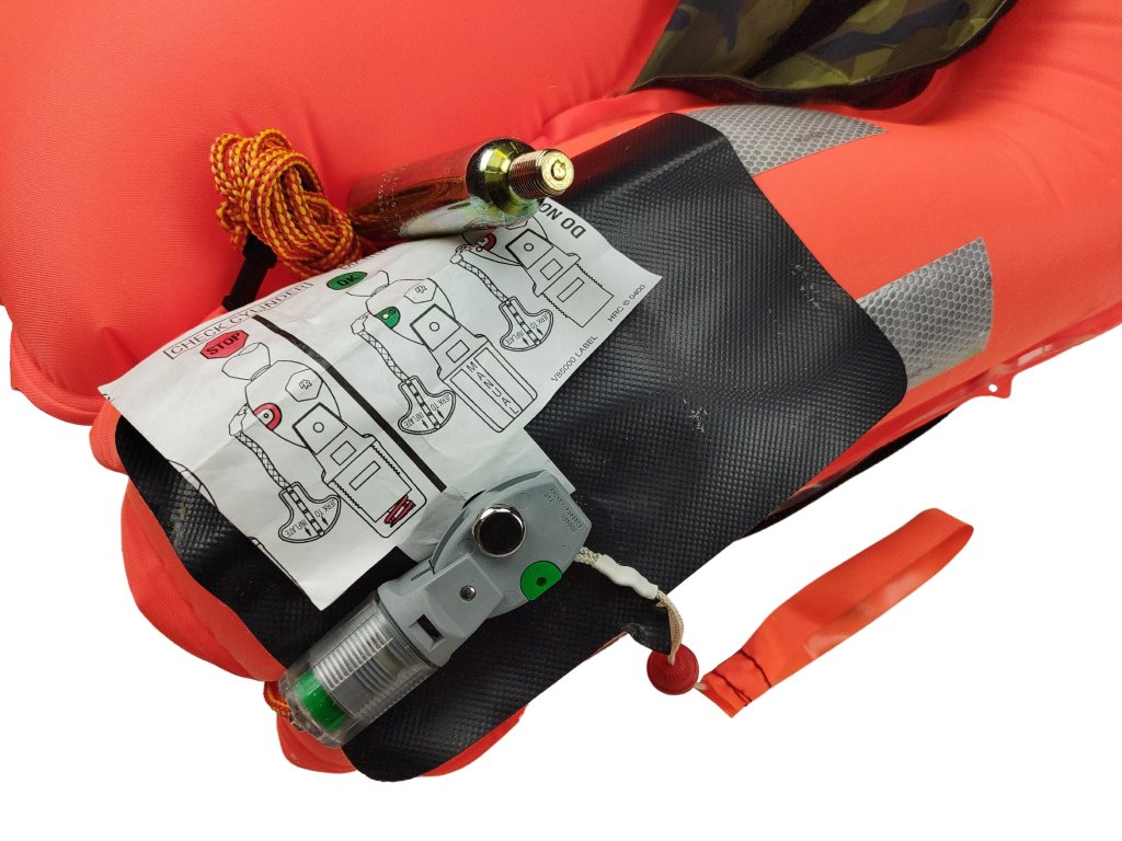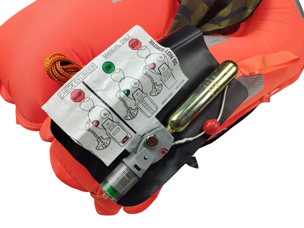 - v límci samonafukovací záchranná vesta s bombičkou pro rychlé nafouknutí