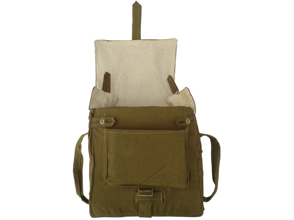 - Plátěná zdravotní taška přes rameno sovětského vojáka.