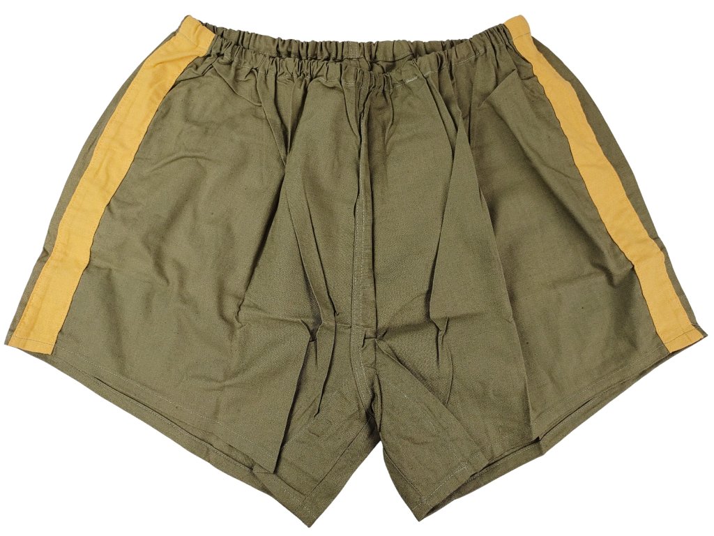 Trenýrky bavlněné spodní prádlo zelené khaki trenky se žlutým lampasem ČSLA originál
