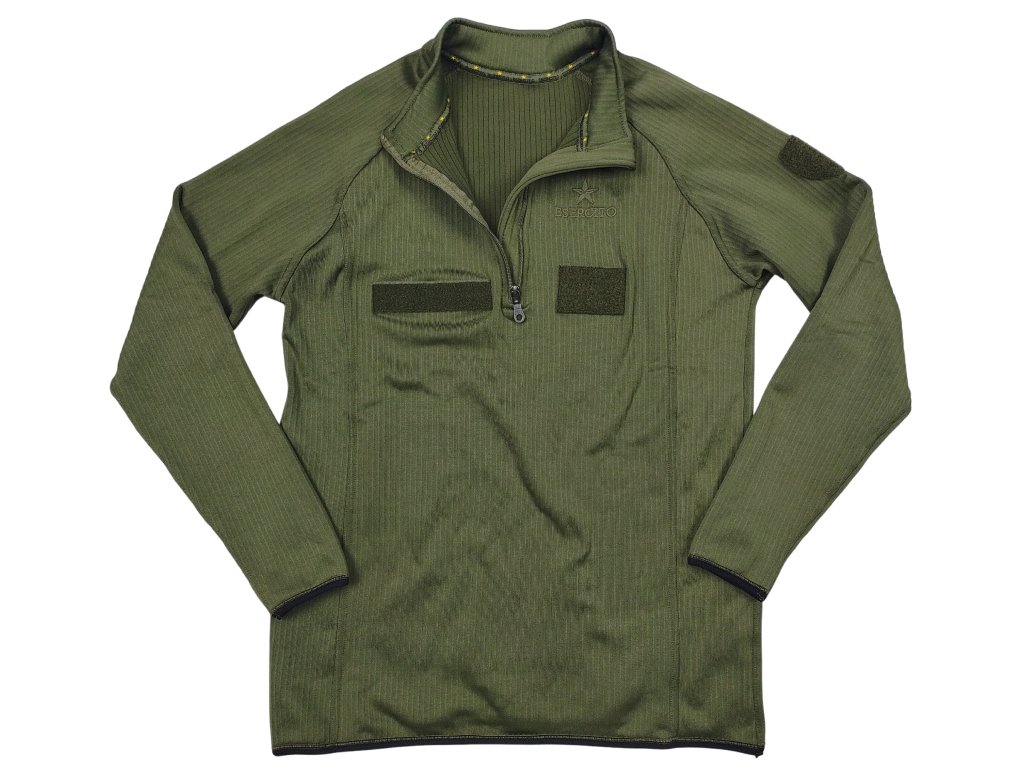 Vojenský fleecový svetr nebo také fleecové funkční termo triko s vysokým límcem a dlouhým rukávem či fleecový rolák se zipem Esercito Italiano (Italské armády).