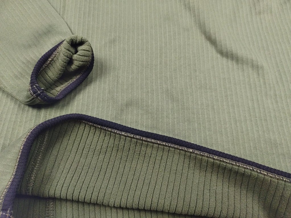 Specifická konstrukce kostkované látky usnadňuje nošení a snižuje objem. Vnitřek trika je měkký pro zvýšení pocitu tepla, zatímco vnější strana je pletená, což usnadňuje klouzání v kombinaci s jinými látkami při nošení pod svrchním oděvem. Na každé manžetě jsou pruženky, které drží rukávy na místě.