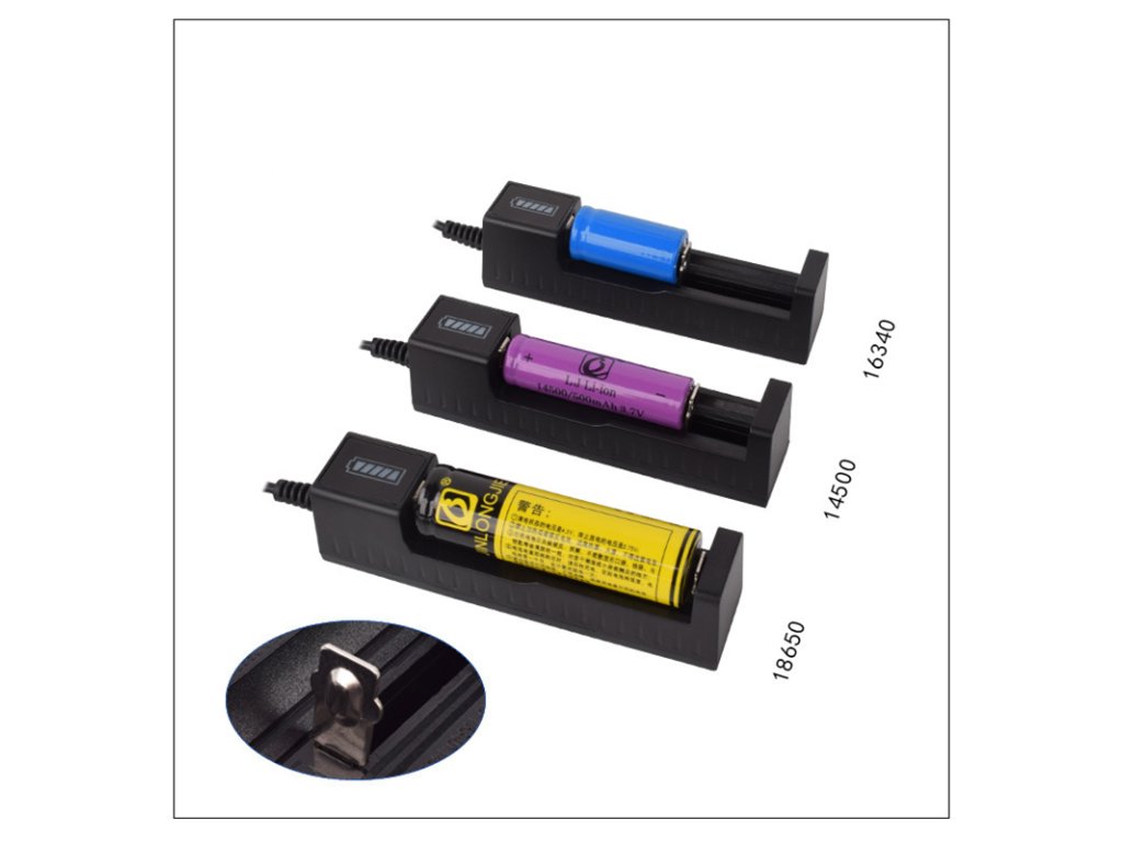 USB nabíječka je určená pro 3.6/3.7 V li-ion akumulátory. Díky pohyblivému minusovému kontaktu dokáže nabíjet akumulátory s délkou 34 až 70 mm lze ji použít například s typy 10440, 14500,14650,16340, 17500, 17670, 18350, 18500, 18650, 18700, 22650, 25500 a 26650.