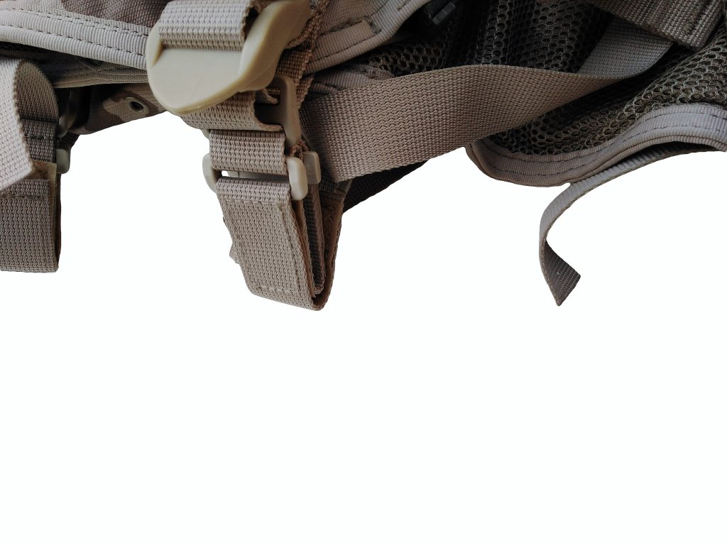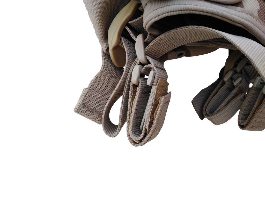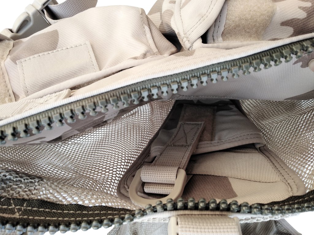 - spodní část vesty je vybavena textilními oky se suchými zipy,pro možné uchycení bojového opasku MNS-2000