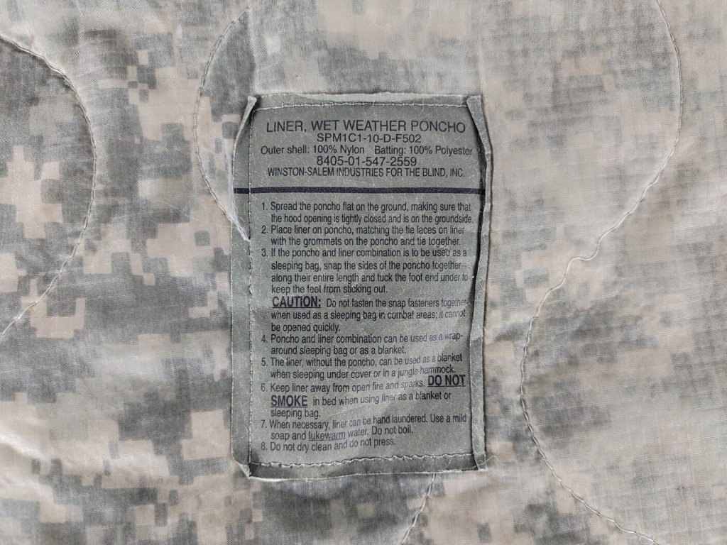- LINER, WET WEATHER PONCHO, UCP CAMOUFLAGE.