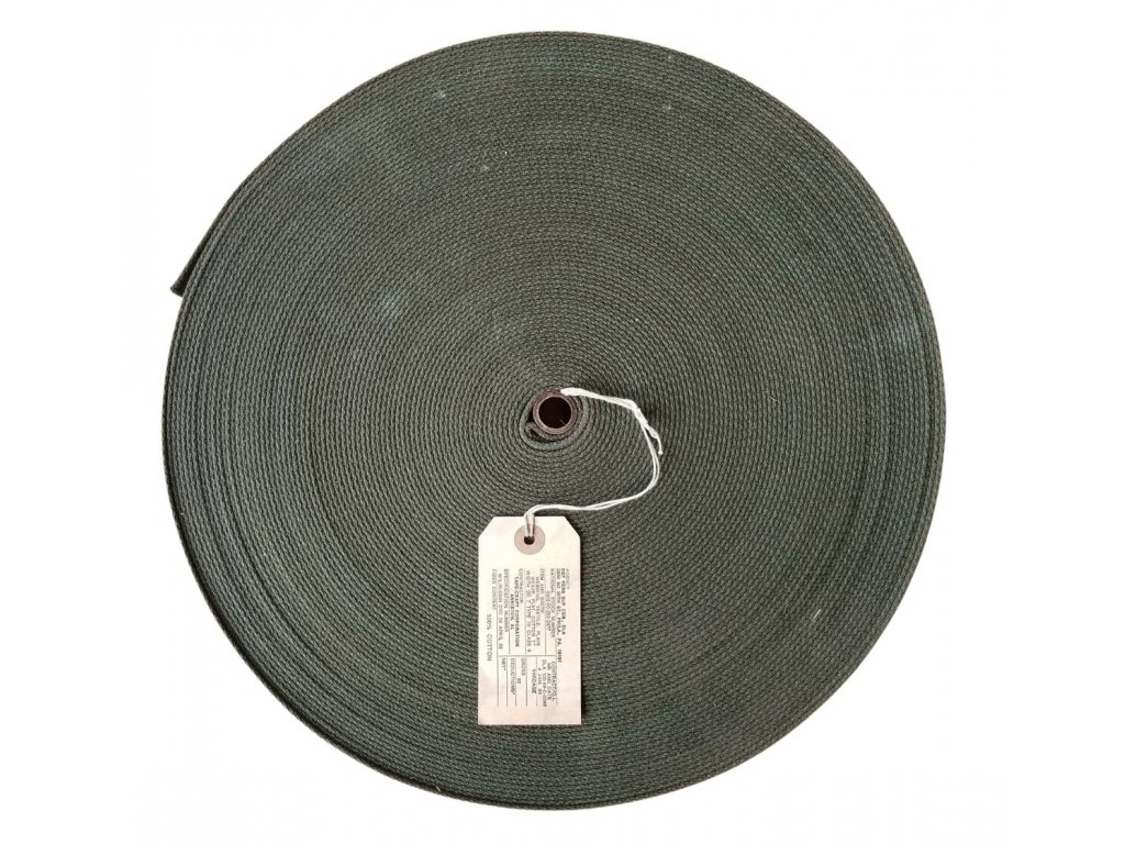 Vojenský popruh bavlněný šíře 38 mm metráž Oliv Drab US originál 60yds 54,864m