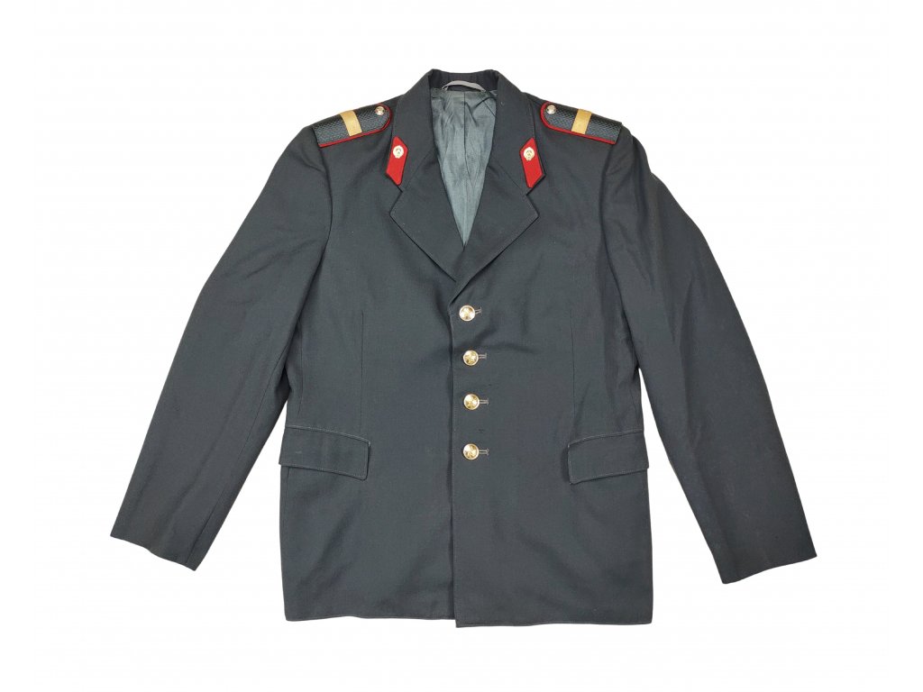 - sako se zapíná na čtyři knoflíky,hodnostní nárameníky (výložky),dvě boční kapsy,dvě vnitřní kapsy na knoflík