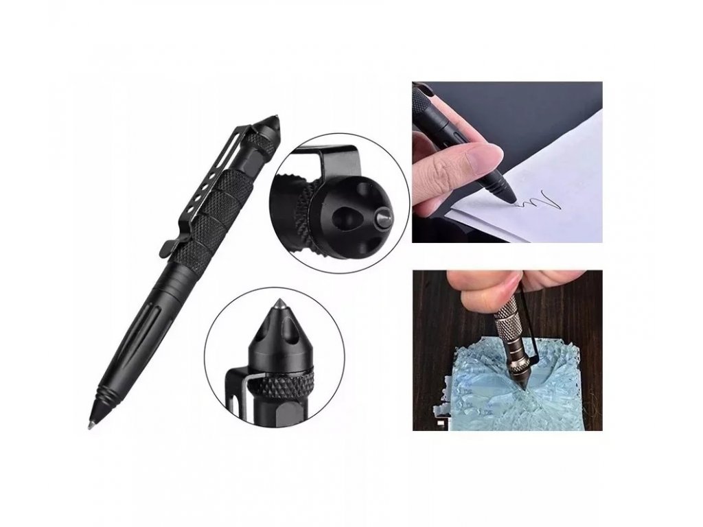 - taktické kovové psací pero s hrotem na rozbíjení oken (TACTICAL PEN)