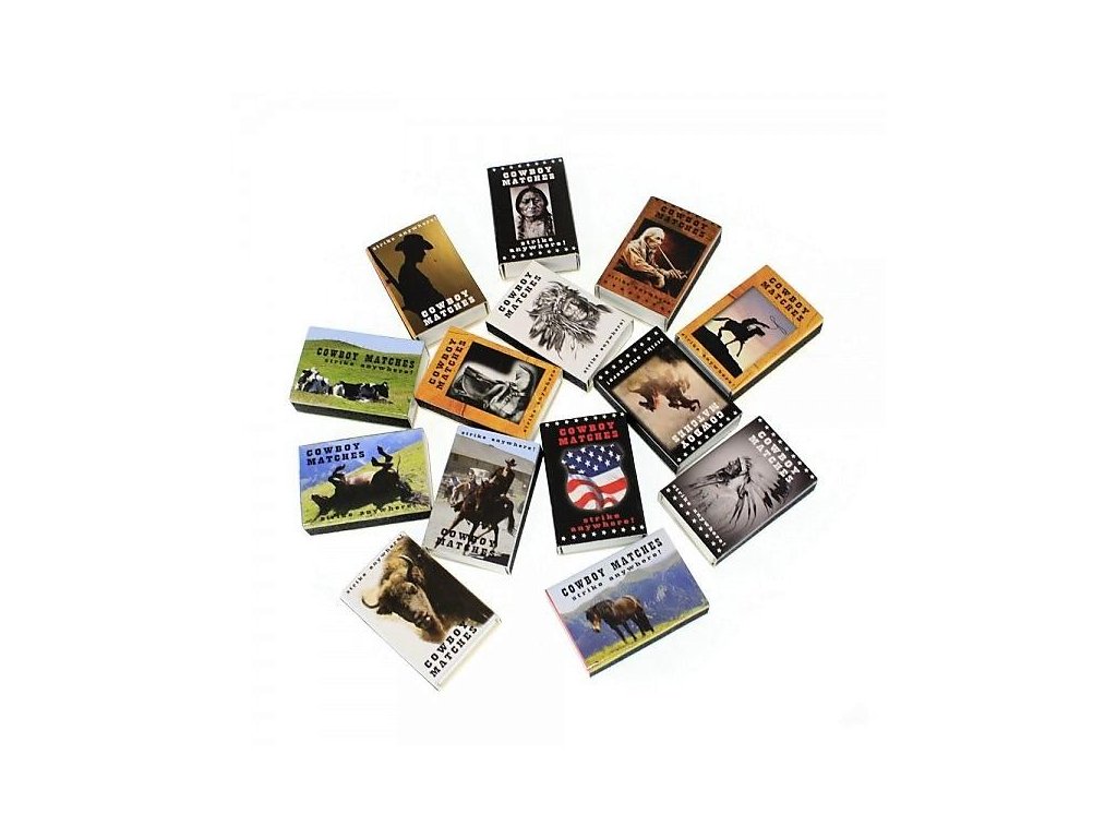 - Balení zápalek je opatřeno různým potiskem s kovbojskou, westernovou a tradiční tématikou.