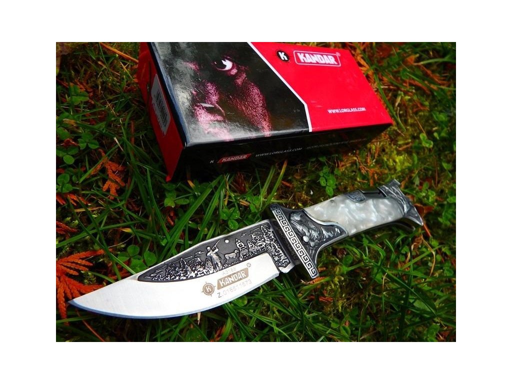 Kandar® A3188 je zavírací lovecký nůž v masivním, celokovovém provedení s ozdobnou loveckou rytinou na čepeli i rukojeti. Ocení jej především začínající zálesáci a táborníci, ale zalíbit se může i ostříleným myslivcům. I přes svou větší hmotnost 316 gramů se hodí pro každodenní nošení. S otvorem v rukojeti k provlečení šňůry, a praktickým klipem na opasek nebo hranu kapsy.